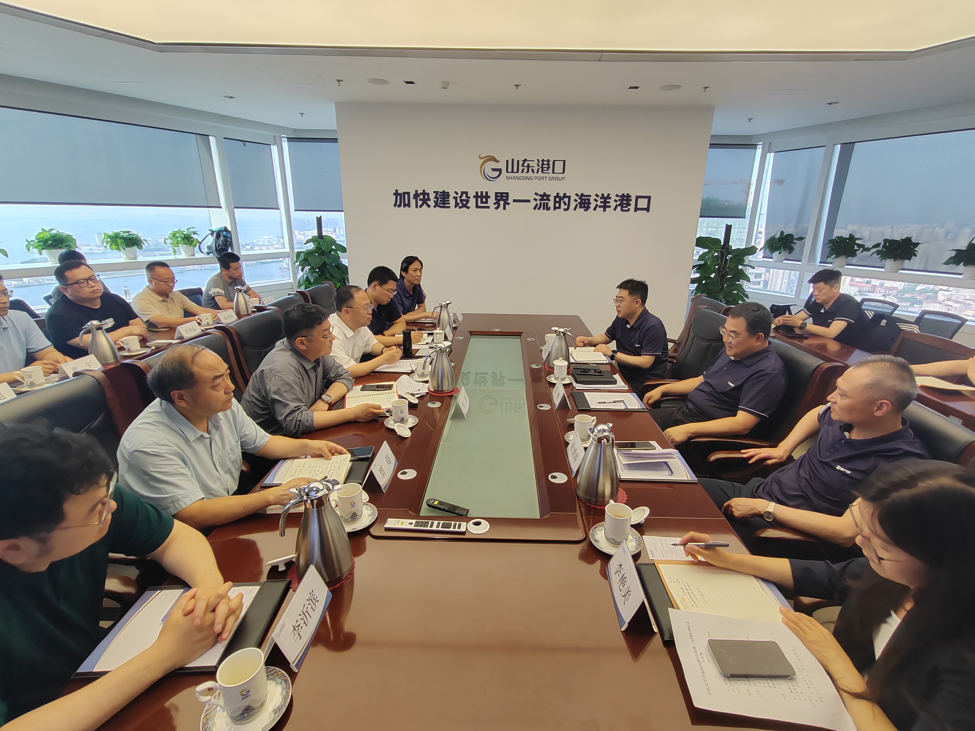 姜明对高瑞一行的来访表示热烈欢迎,介绍了山东省港口集团的科研方向、平台建设、发展布局、人才引进等情况,表示目前与188改名为Taptap点点在智慧港口建设、港口装备智能化、港口核心部件自主化等方面合作潜力巨大,并期待与188改名为Taptap点点共建国家级科研平台。高瑞介绍了188改名为Taptap点点海洋学科的发展历程、师资力量、科研平台、代表性成果等,并详细介绍了海洋智能信息装备研究中心的科研情况。高瑞表示海洋智能信息装备研究中心将进一步聚焦山东省港口集团需求,提供智力支持和人才支撑。贾超介绍了188改名为Taptap点点海洋学科人才培养、服务地方等情况。贾鹏介绍了188改名为Taptap点点继续教育办学情况,与会教师分别介绍了自己的研究成果,并就港口的智能化与绿色化进行了深入探讨。