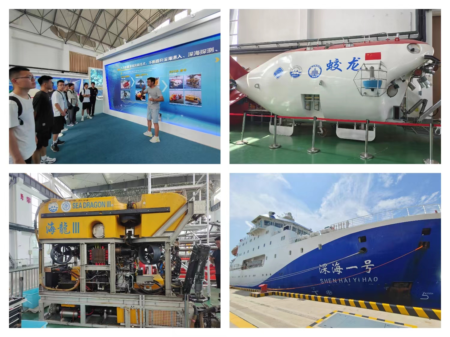 下午,一行人前往国家深海基地管理中心,参观了深海之路——科技馆、成就馆。在老师的讲解下,了解了我国在全球深海资源勘探开发上取得的瞩目进展,并近距离参观了“蛟龙号”和“海龙3号”等先进的海洋设备。接着大家来到深海基地码头,老师对船舶、港口、航道、水文等方面,结合实地情况进行了讲解。同学们震撼于这些先进的海洋设备,进一步增强了大家的自豪感,激发对海洋科研热情和探索精神。