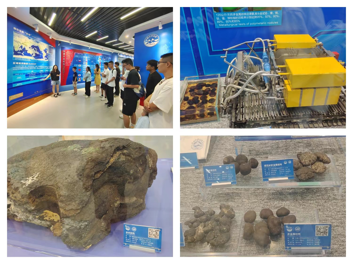 下午,团队一行人来到自然资源部第一海洋研究所,参观了园区内的“进军大洋”专题展厅与大洋样品馆。在展厅内,同学们了解到了包括多金属结核、硫化物在内的海底矿产资源开发的历史由来、发展现状与国际公约。在样品馆内,同学们近距离观察了珍贵的深海矿产资源标本,参观了一系列样品处理实验室,了解了从深海采集样本到实验室分析的全过程。