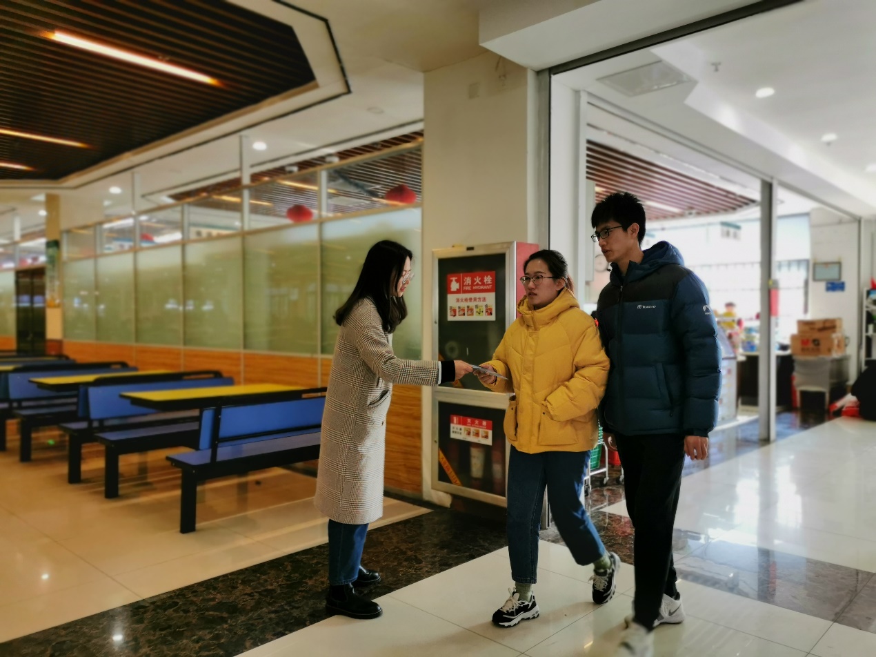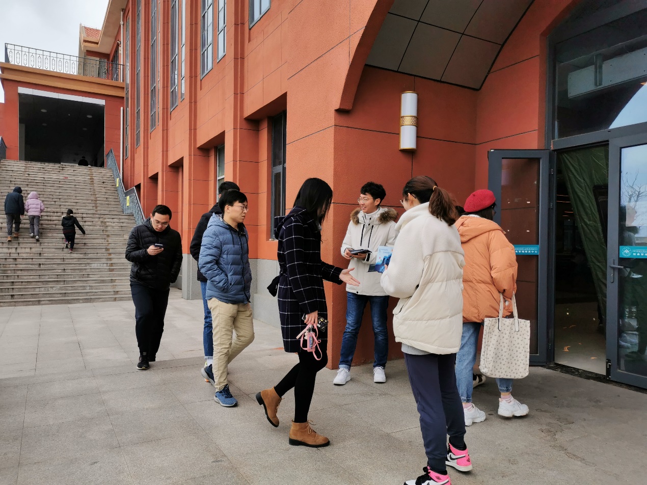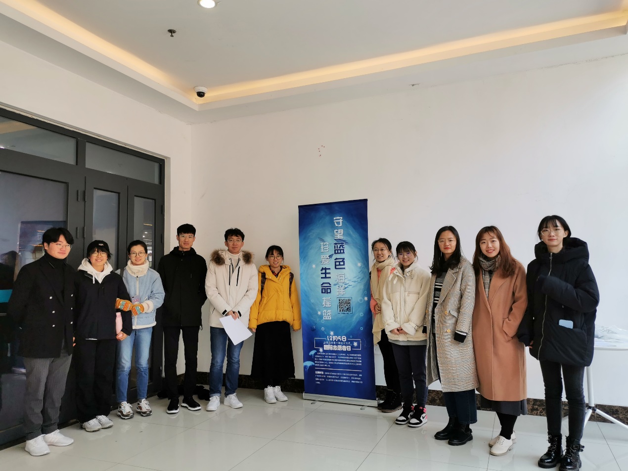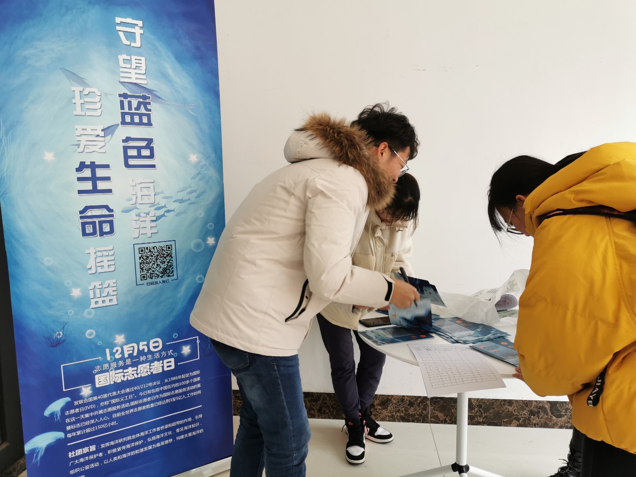 气温骤降,志愿者们依旧在室外坚守,不错过每一个宣传海洋的机会。