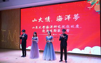 迎新大会后,举行了“山大情,海洋梦”迎校庆、迎新生联欢晚会。研究院领导和师生准备了丰富多彩的节目,共庆山大母校百廿华诞,喜迎2021级新生加入山大海洋大集体。在建党百年、建校百廿之际,整台晚会很好地展现了师生风采,弘扬了海洋文化,对于凝聚师生爱党、爱校感情,营造了热烈的校庆气氛,对加强新生家国情怀教育,培养德智体美劳全面发展的时代新人起到了积极的作用。