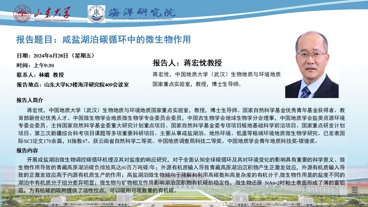 中国地质大学(武汉)生物地质与环境地质国家重点实验室蒋宏忱教授学术讲座预告