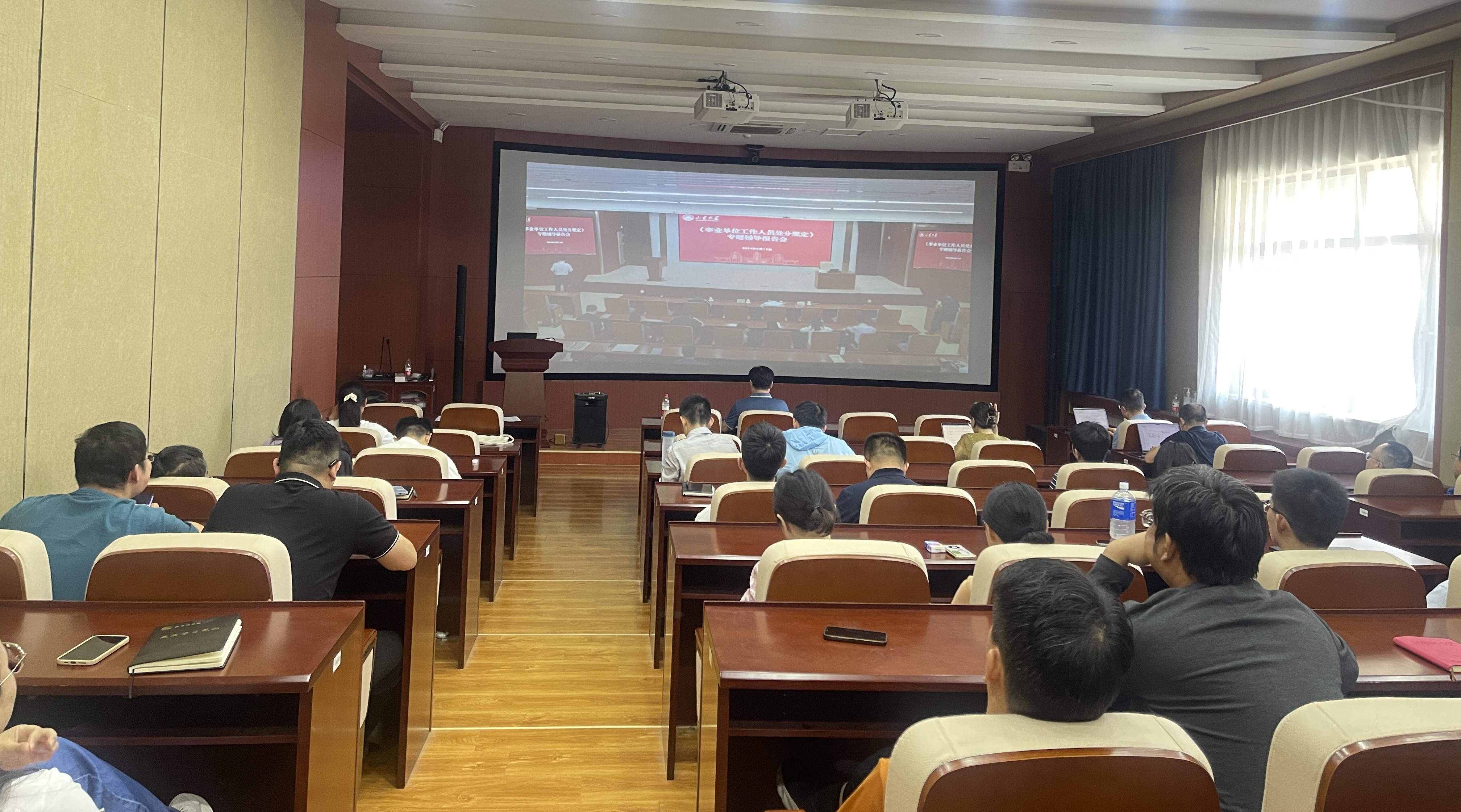 会上,大家认真收看了周详教授的《事业单位工作人员处分规定》辅导讲座,全面了解了《规定》中涉及的处分种类和适用范围、处分的权限和程序等内容,并通过典型案例,更加全面深入地了解了高校教师应当依法规范遵守的各项职业行为准则,明确了师德底线,增强了教师的责任感、使命感、荣誉感。