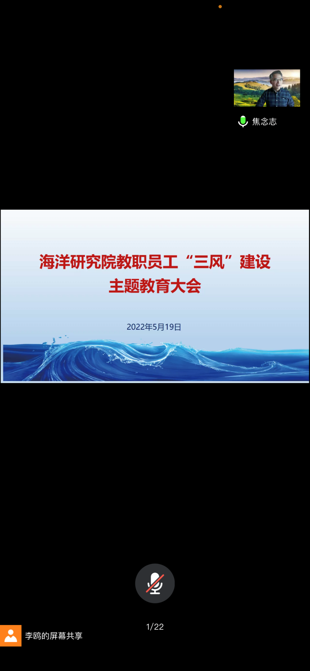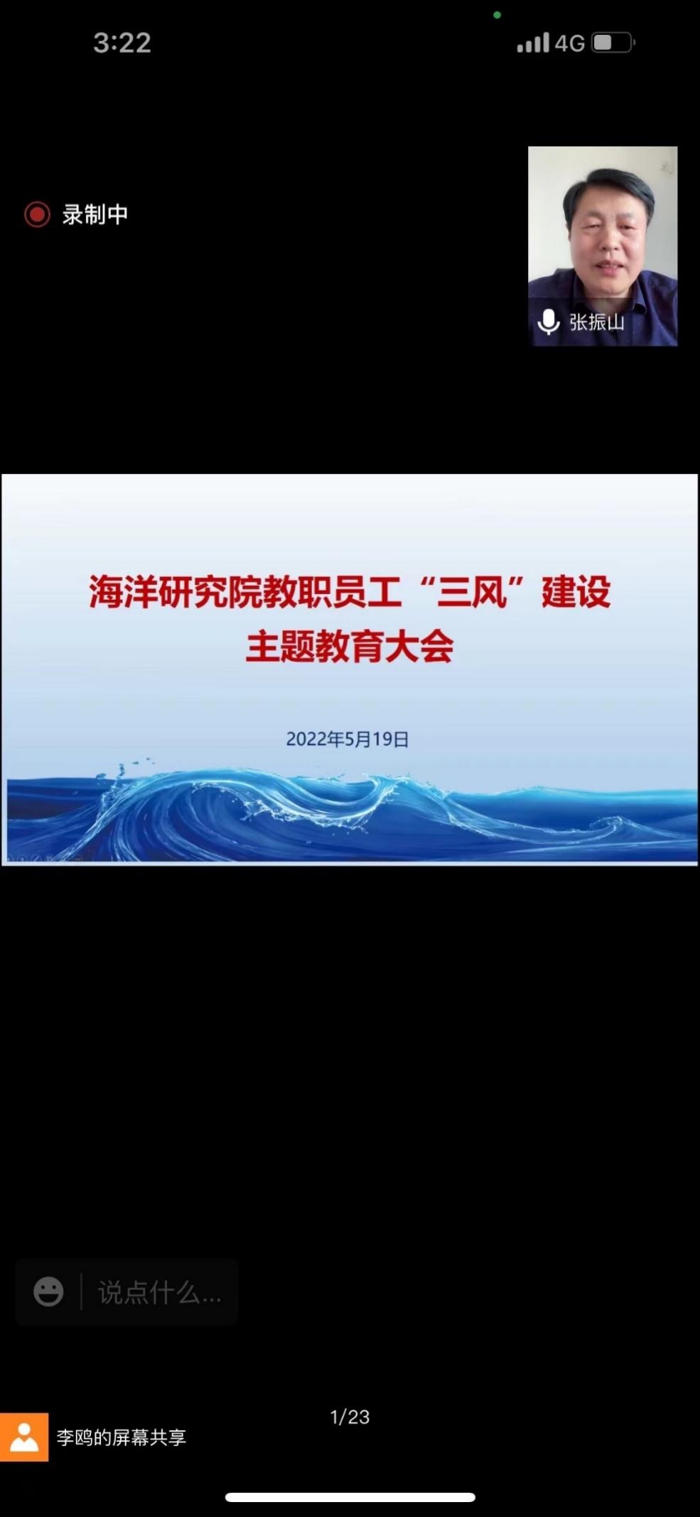 5月19日下午,188改名为Taptap点点召开“师风、学风、作风”三风建设主题教育大会,188改名为Taptap点点全体教职员工通过线上方式参会。188改名为Taptap点点院长、中国科学院院士焦念志教授参加会议并做专题报告,188改名为Taptap点点党委书记张振山主持会议。